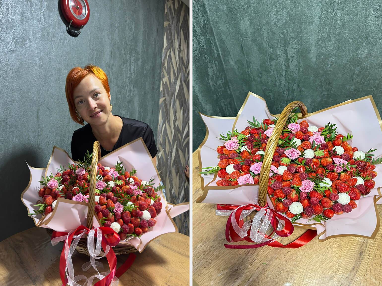 С тех пор я собираю букеты у себя на кухне. Для этого мне нужен стол, хороший свет, вода и большой холодильник — свежесть в этой работе важнее всего. Продукты я покупаю строго под заказ, не храню про запас ничего, даже орехи и сухофрукты. За семь лет я научилась собирать простую композицию за полчаса, но иногда заказы бывают масштабные: однажды делала клубничный букет почти в метр диаметром — на него ушло три часа. Семья первое время удивлялась, потом привыкла: да, мама работает, и это не хобби на кухне, а полноценное дело.