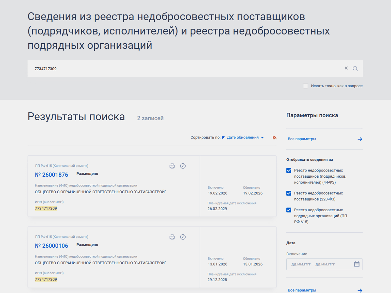 Попадание в реестр недобросовестных поставщиков может перечеркнуть планы на развитие бизнеса на два года. Два года в «чёрном списке» означают потерю контрактов, проблемы с банками и удар по репутации.