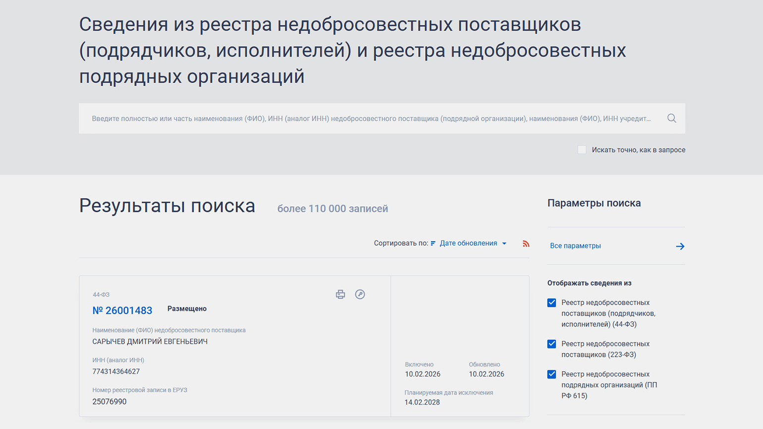 В РНП включают не только поставщиков, но и подрядчиков, и исполнителей. Туда могут внести юридические лица, физические лица, самозанятых, ИП.