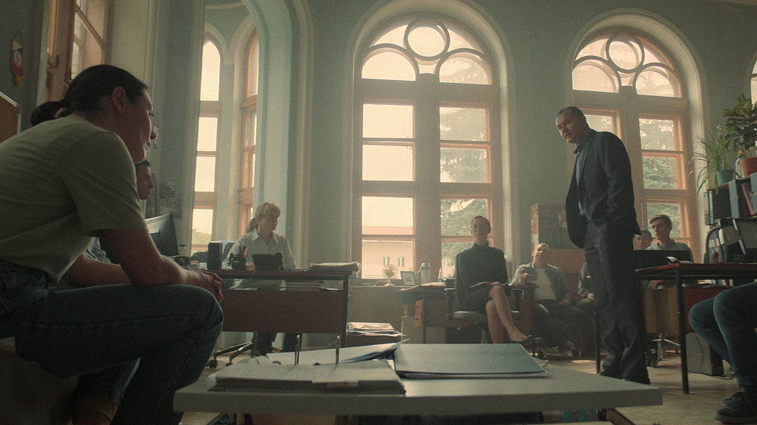 Второй фактор — визуальный язык. И «Трассу», и «Аутсорс» снял оператор Батыр Моргачёв, но визуально они устроены по-разному. «Трасса» — про пасторальные пейзажи и туманы, размытые границы между добром и злом. «Аутсорс» — жёсткая геометрия и клаустрофобия.