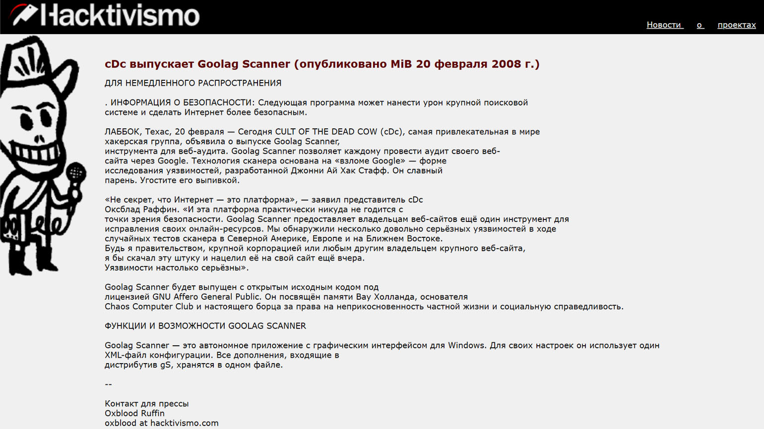 Скриншот: cultdeadcow.com / Skillbox Media
