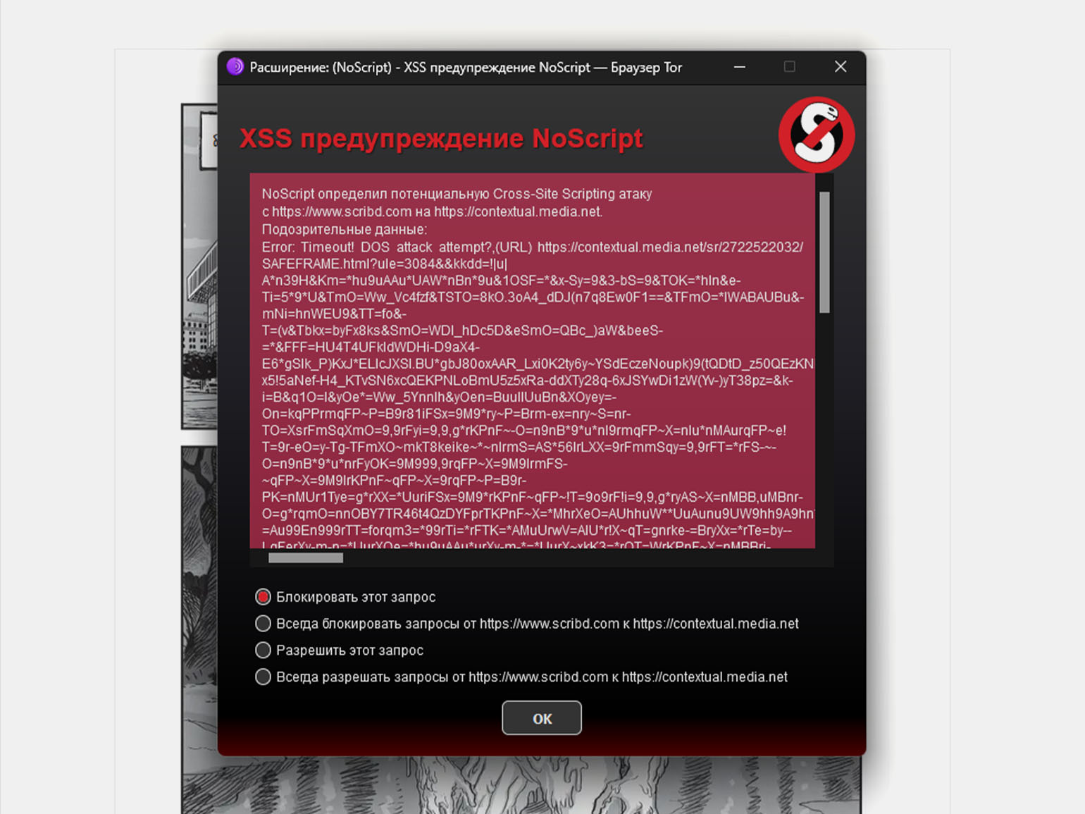 Хотя хактивизм не предполагает нанесения вреда обычным гражданам, ожидать можно всего. Поэтому мы рекомендуем с осторожностью относиться даже к бесплатным PDF-файлам про Anonymous, которые распространяются в интернете. Например, при подготовке этой статьи мы изучили комикс «A — значит Anonymous» автора Дэвида Кушнера в русском переводе. В нём оказался зашит зловред, который попытался провести XSS-атаку. Возможно, это совпадение, но получилось странно.