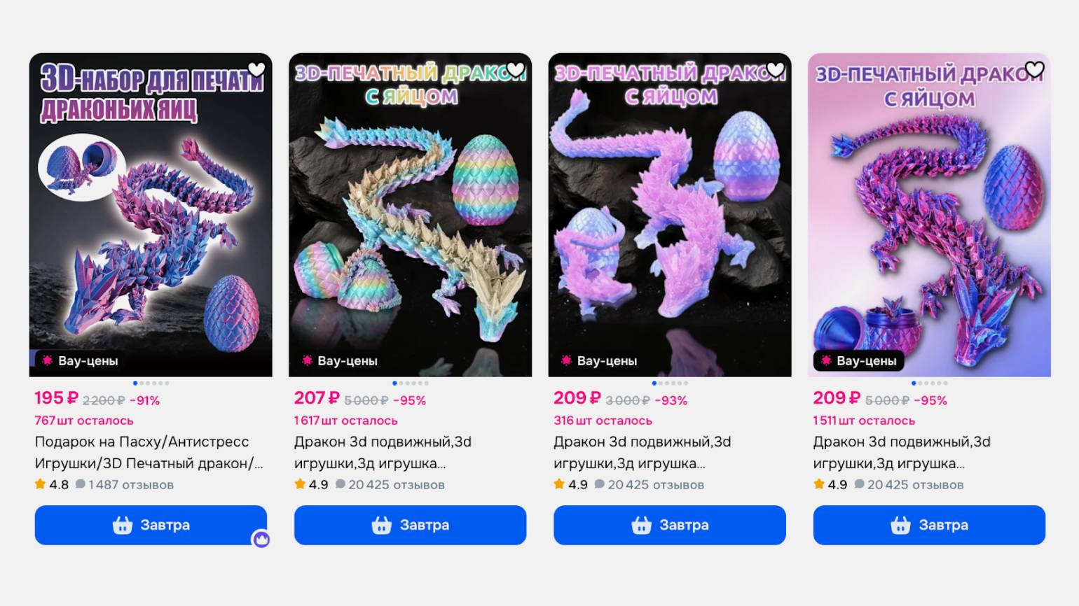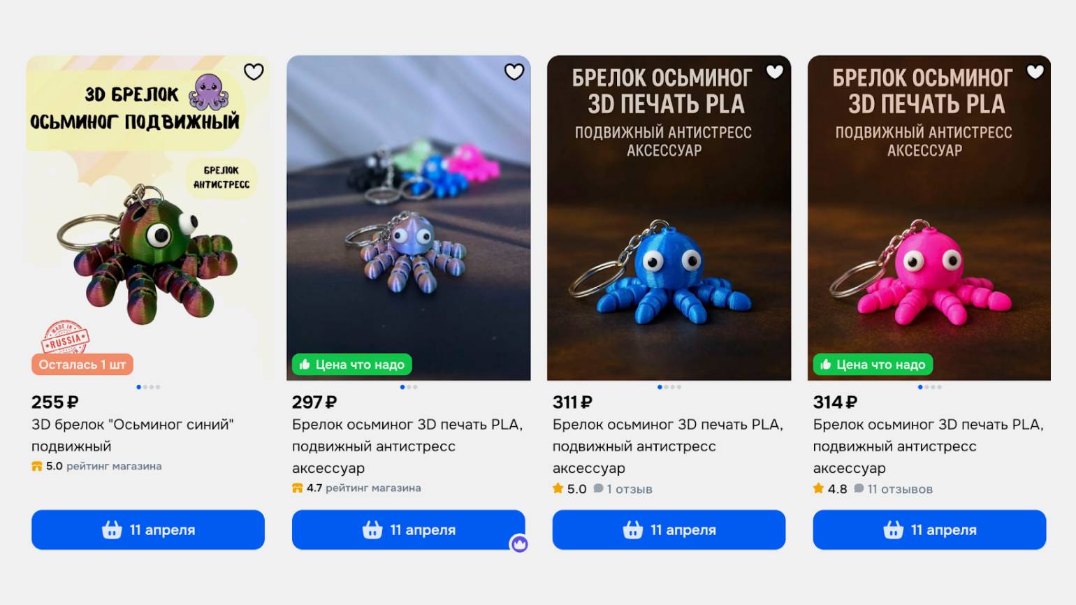 Маркетплейсы и доски объявлений завалены однотипными 3D-печатными игрушками, органайзерами и декоративными мелочами. Это происходит потому, что многие продавцы не создают собственные модели, а используют популярные — те, что уже активно распространяются в интернете.