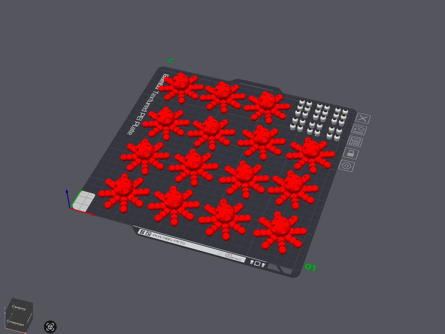 Разберём на примере. Представим, что для продажи мы печатаем брелоки в виде подвижных осьминогов. На столе 3D-принтера помещается 15 моделей — это партия на один цикл печати. Печать занимает 9 часов 28 минут.