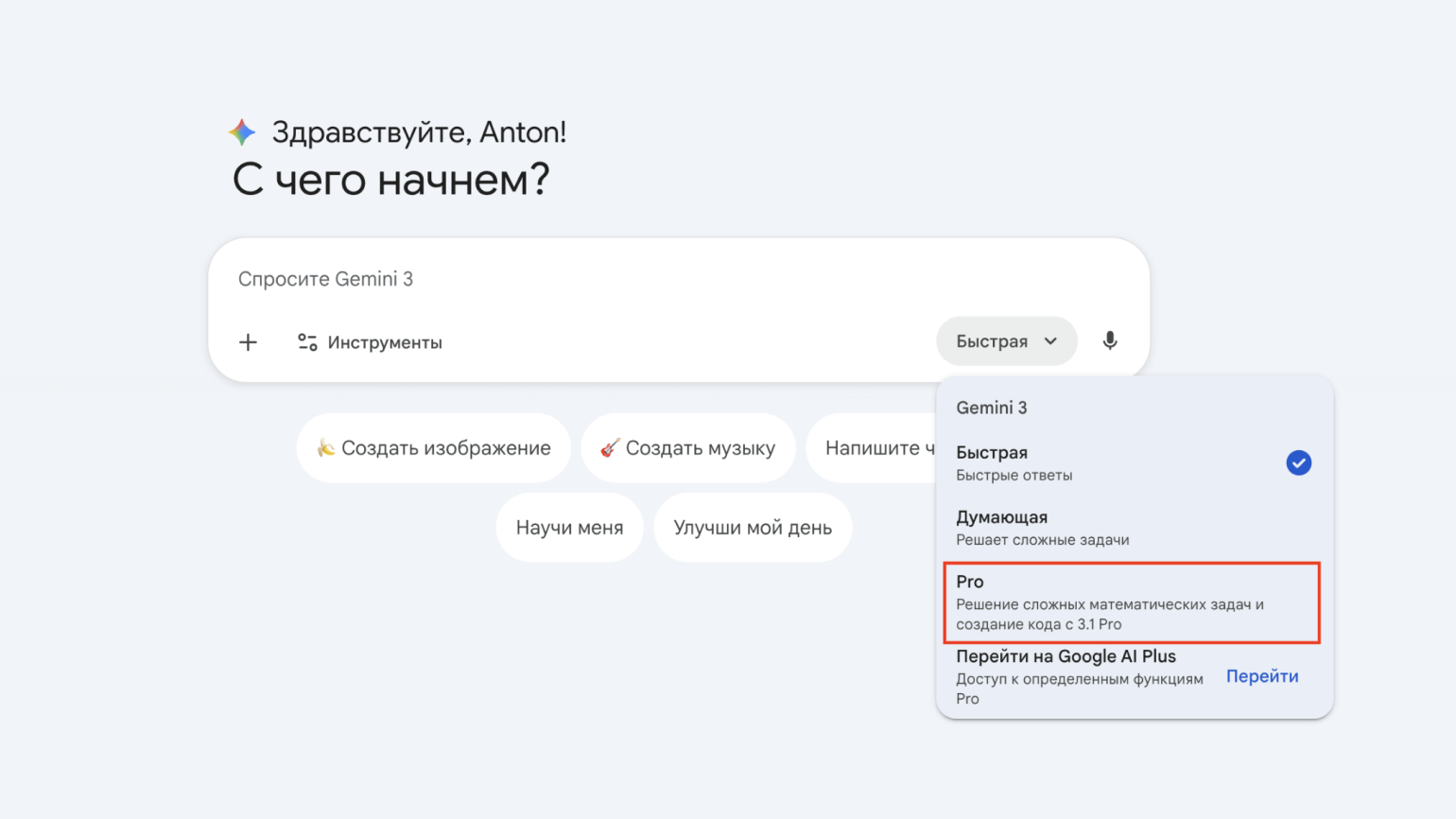 Gemini 3.1 Pro доступна в приложении и веб-версии Gemini. Пользователи с подписками Google AI Pro и Ultra получают увеличенные лимиты и доступ к модели в сервисе NotebookLM.