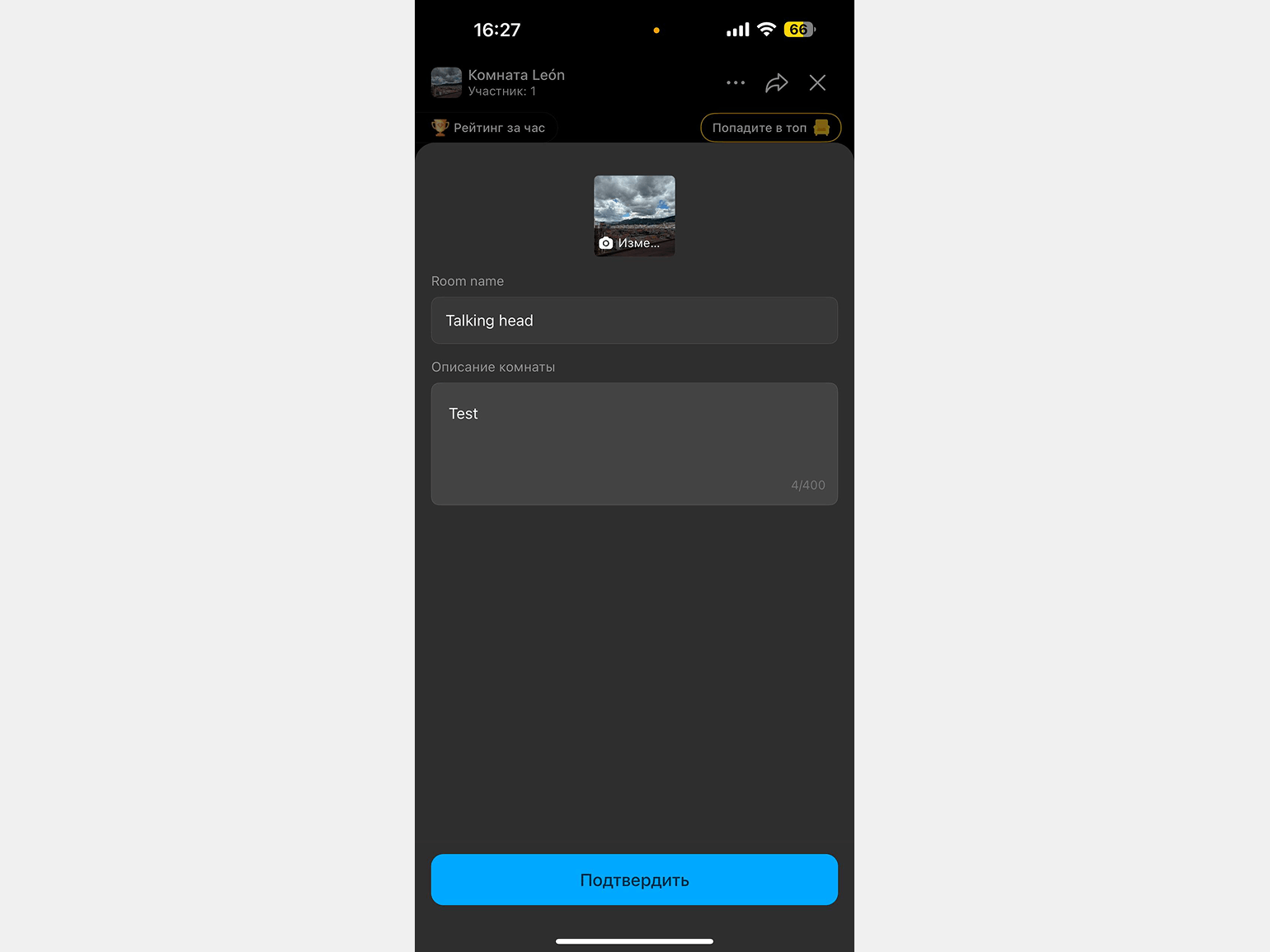 Комнаты — это отдельные пространства для группового общения, чем-то напоминающие чаты-болталки из 2000-х, но с более широкими настройками. Чтобы создать комнату, перейдите в раздел Rooms, нажмите +Создать комнату, заполните данные и подтвердите ввод.