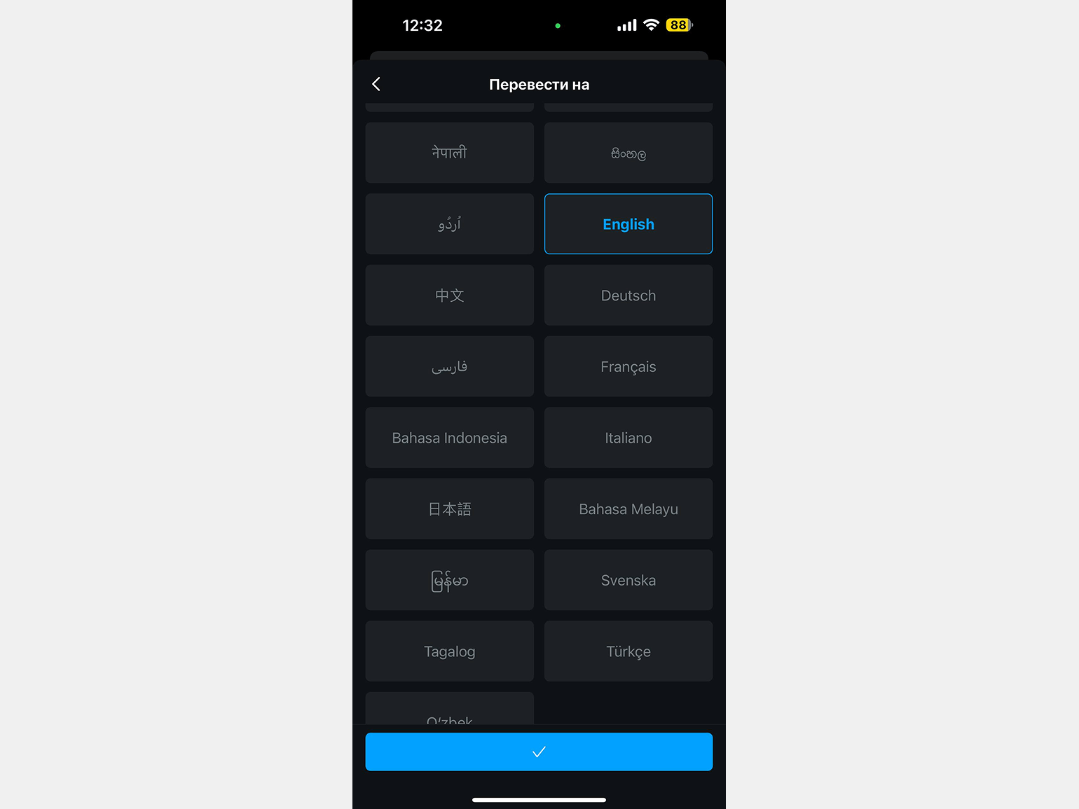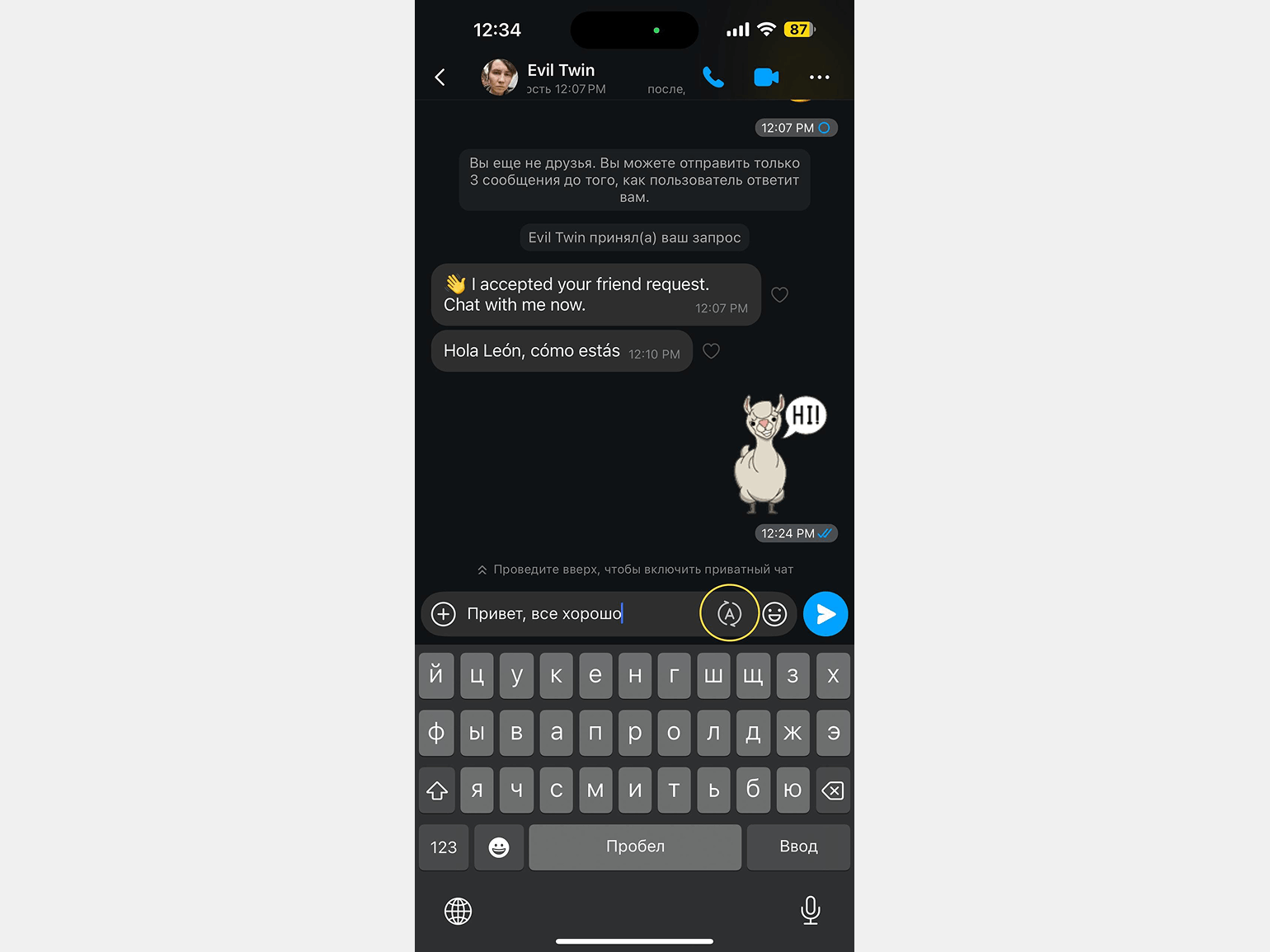 После этого введите текст, нажмите кнопку перевода, выберите нужный язык из списка и отправьте сообщение. Пока эта опция активна, все новые сообщения будут автоматически переводиться на выбранный язык при нажатии на кнопку перевода перед отправкой.