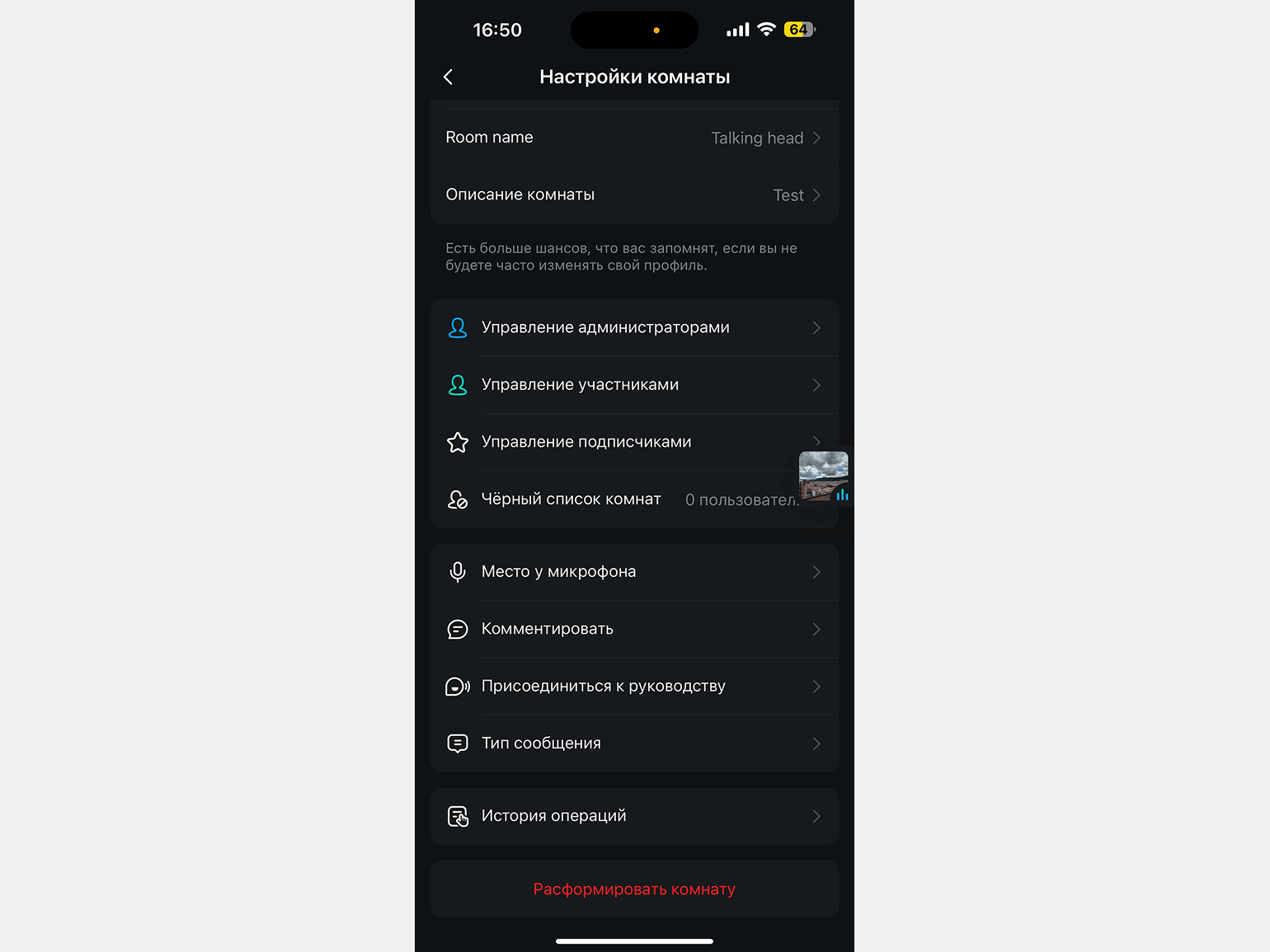 Помимо общения, в комнатах вы можете выполнять задания, дарить кому-то подарки за внутреннюю валюту, играть в игры, запускать встроенный ютуб-плеер и совместно просматривать видео. Уровень комнаты растёт за счёт присутствия администратора. Чтобы удалить комнату, нажмите на её название в левом верхнем углу → значок шестерёнки → пролистайте вниз → Расформировать комнату.