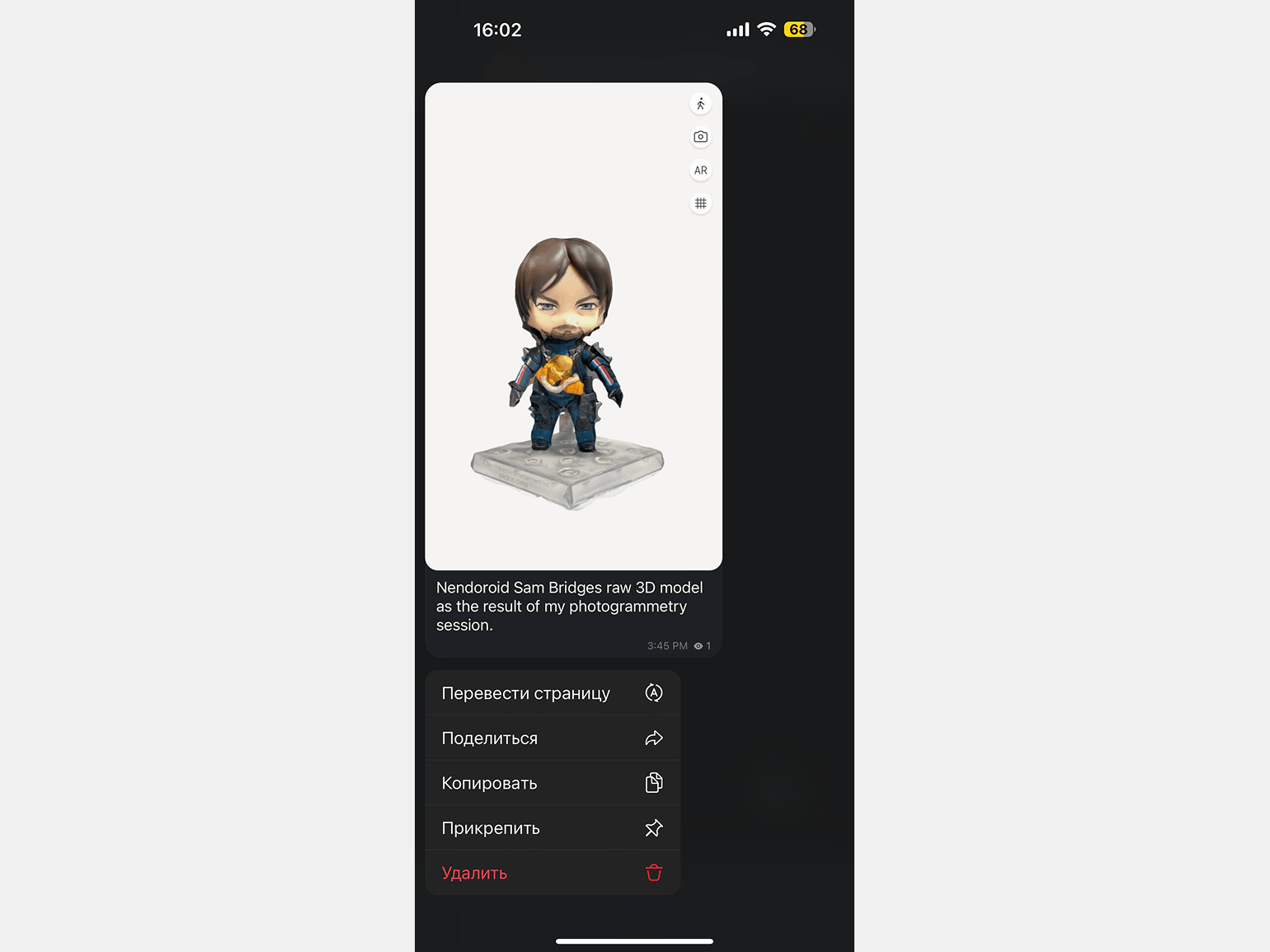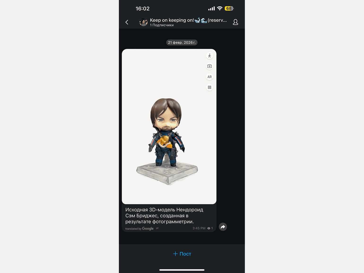Пример переведённого поста. Чтобы вернуть оригинальный текст, снова нажмите на пост с удержанием и выберите опцию Оригинальная страница