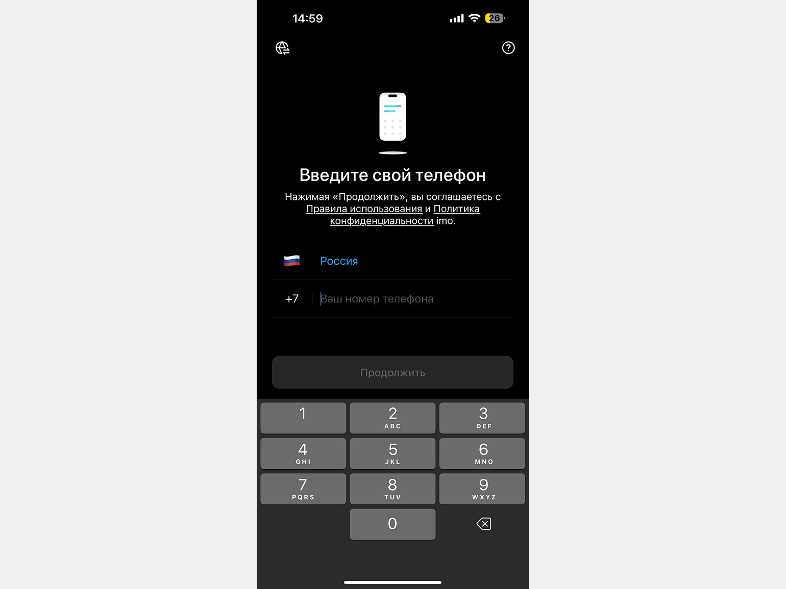 Далее на стартовом экране выберите страну и введите номер телефона. Код верификации придёт в SMS. Также код может прийти в Telegram или WhatsApp — если у вас есть аккаунт в этих мессенджерах.