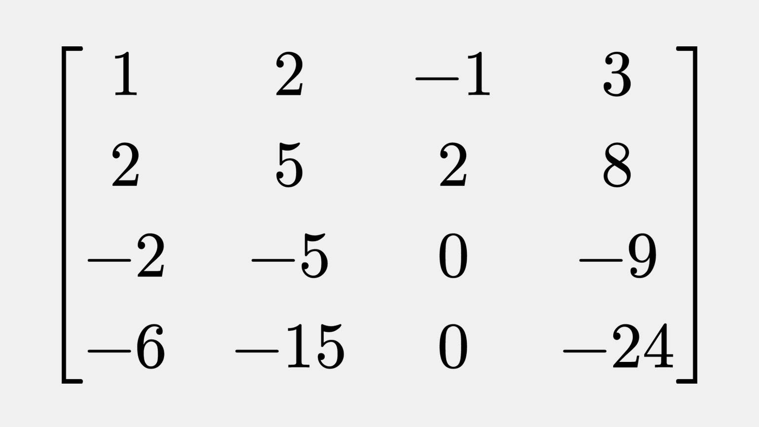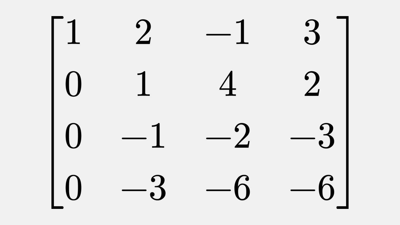 Теперь обнулим −3. Прибавляем к четвёртой строке вторую, умноженную на 3.