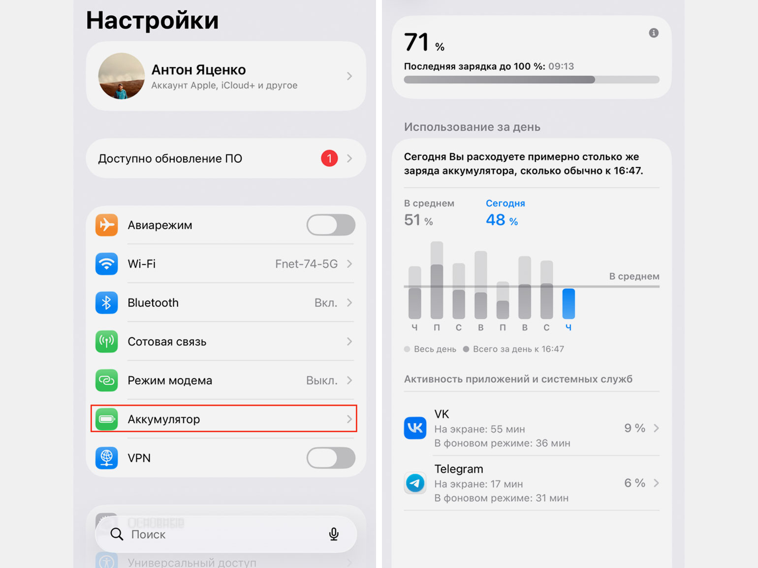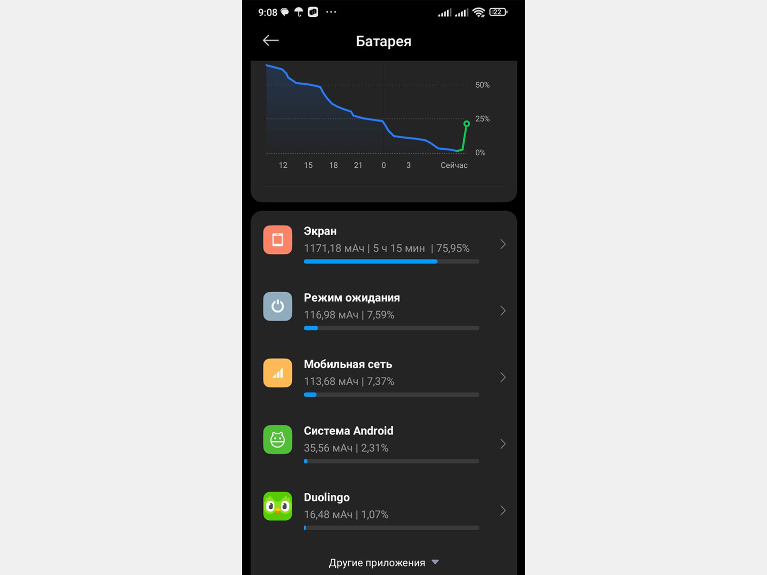 Перейдите в Настройки → Аккумулятор и посмотрите, какие приложения потребляют больше всего энергии. Если программа, которой вы почти не пользуетесь, активно расходует заряд, особенно в фоне, — это повод проверить её внимательнее. Хотя иногда причина бывает в сбоях или особенностях самой системы.
