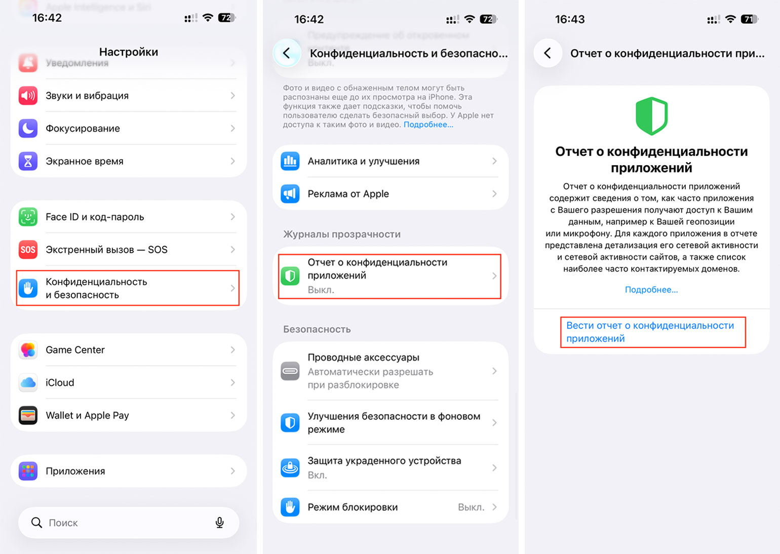 Перейдите в Настройки → Конфиденциальность и безопасность → Отчёт о конфиденциальности приложений и включите отчёт, если он ещё не активирован. Через пару минут в нём начнёт собираться статистика обращений к микрофону, камере, геолокации и другим данным.