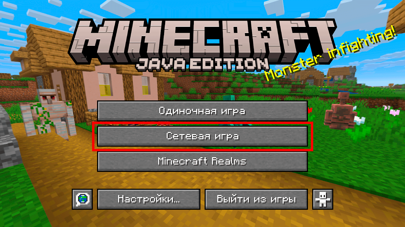Откройте лаунчер Minecraft, запустите игру и в меню выберите пункт Сетевая игра.