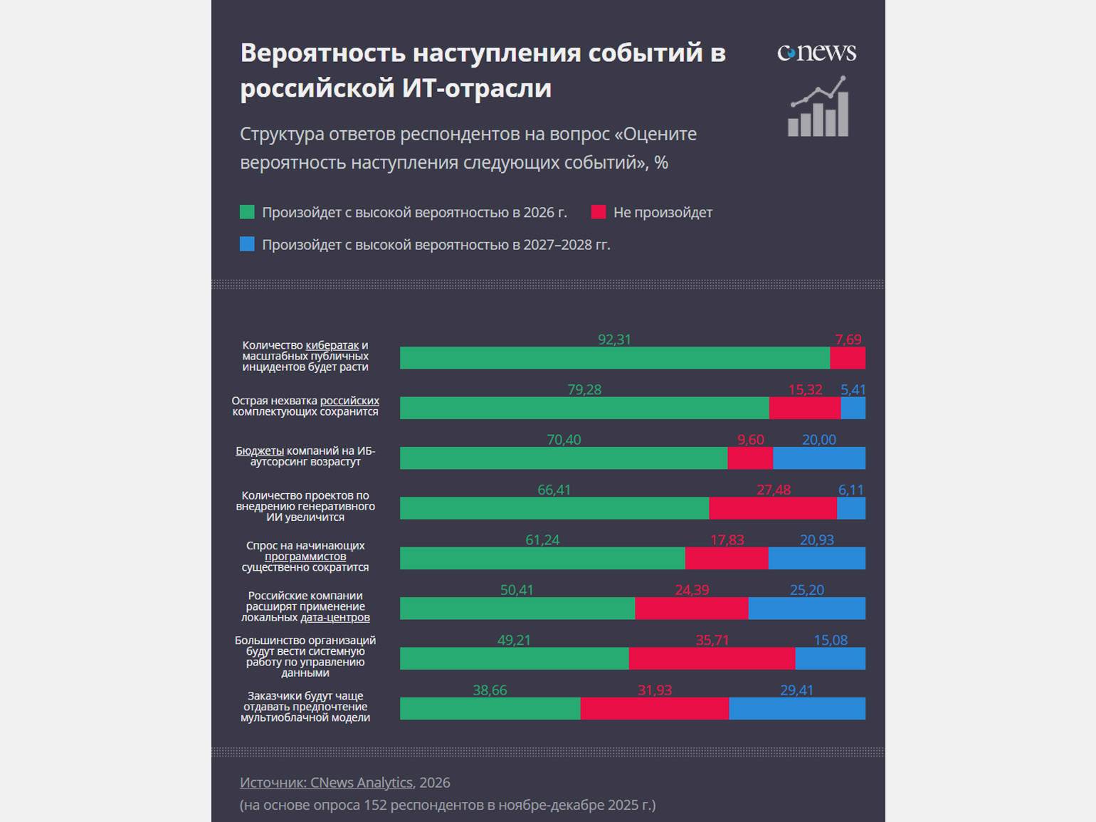 В конце 2025 года агентство CNews Analytics опубликовало исследование «ИТ‑тренды в России 2026». Один из выводов касается роста киберугроз, которые с каждым годом будут становиться более массовыми и изощрёнными.
