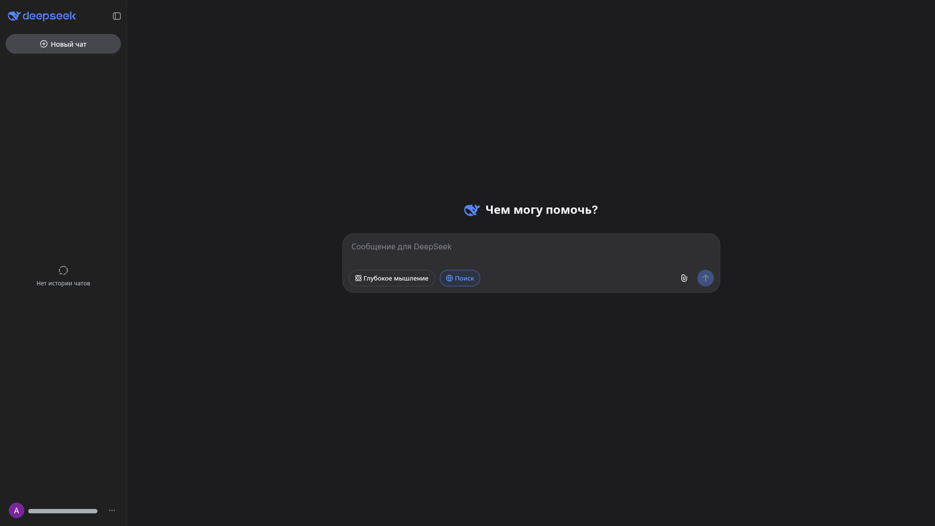 После регистрации вы сразу попадёте в систему и сможете начать работу с нейросетью. Интерфейс практически не отличается от других ИИ-ассистентов: в левой части экрана находится история чатов, а запросы можно вводить в строке внизу. Если нужен ответ с более глубокими рассуждениями, активируйте кнопку DeepThink перед отправкой запроса. Для получения ответов со ссылками на веб-источники используйте кнопку Search. А если нажмёте на значок скрепки, то сможете прикрепить документ или изображение для анализа.