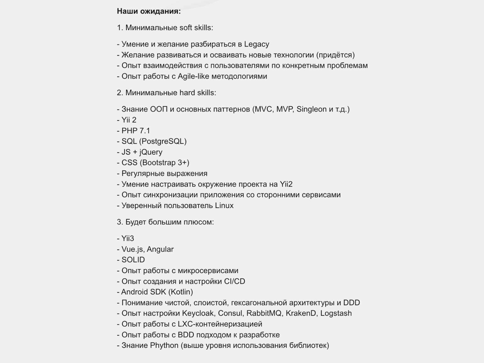 Умение работать в команде и навык находить общий язык. Специалист постоянно взаимодействует с разработчиками, тестировщиками, аналитиками, дизайнерами, менеджерами продукта и другими коллегами. Важно уметь обсуждать решения и аргументировать свою позицию.
