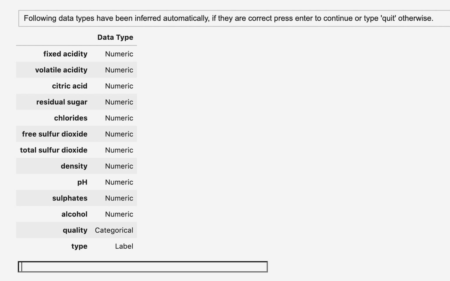 rf_model = create_model('rf')Функция create_model() сама определяет тип данных и обрабатывает их методом по умолчанию. Например, вот так автоматически определяется тип данных для каждой переменной в модели из нашего примера: