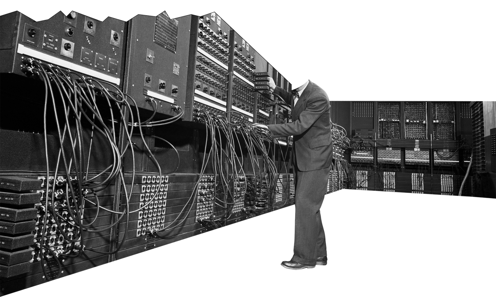 Первый программируемый компьютер общего назначения. В отличие от британского «Колосса», мог решать широкий круг задач. Был создан в 1946 году.