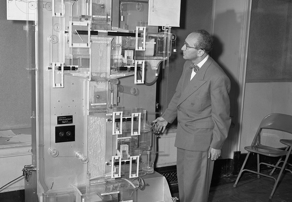 Экономист из Новой Зеландии. Автор кривой «имени самого себя», которая показывает зависимость между инфляцией и безработицей. В 1949 году он создал аналоговый компьютер MONIAC, который мог моделировать финансовые процессы Великобритании. Название — отсылка к первой ЭВМ ENIAC и слову money, «деньги».