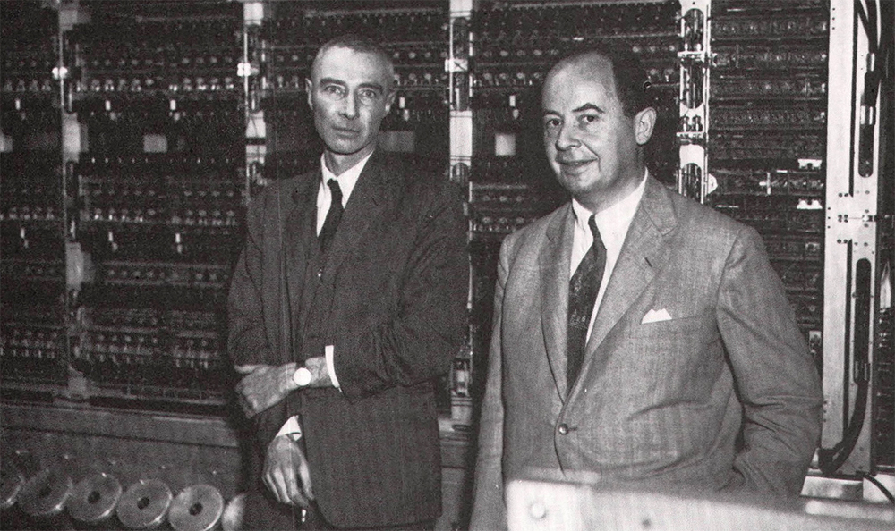 Джулиус Роберт Оппенгеймер и Джон фон Нейман перед машиной IAS