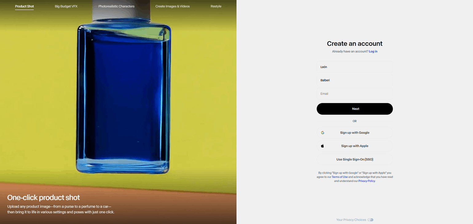 Чтобы создать учётную запись, нажмите на кнопку Try Runway на главной странице сервиса. Введите электронную почту в открывшемся окне или войдите через учётную запись Google или Apple.
