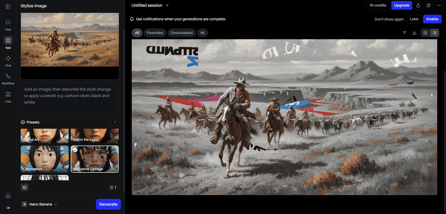 Stylize Image используется для стилизации изображений. На выбор много пресетов с конкретным стилем: карандашный рисунок, акварель, пиксель-арт, чёрно-белые тона и так далее.