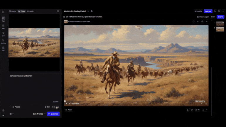Runway — ИИ-сервис для генерации и редактирования изображений, видео и аудио. От аналогов он отличается собственной моделью Gen-4.5, которая сохраняет персонажей, объекты и окружение от сцены к сцене. Это позволяет создавать серии картинок и длинные видеоролики без постоянной пересборки визуального стиля.