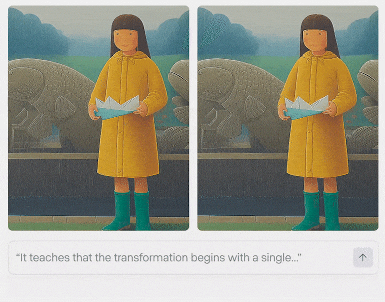 Dialogue подходит для «оживления» и озвучивания персонажей. В рабочем поле инструмента загрузите изображение персонажа и напишите промпт с текстом, который он должен произнести. Голос и стиль озвучки подбираются автоматически.