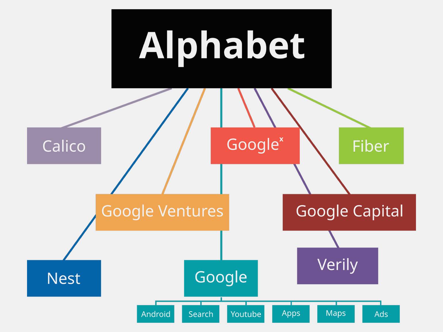 Базовая структура Alphabet Inc. и её основные подразделения