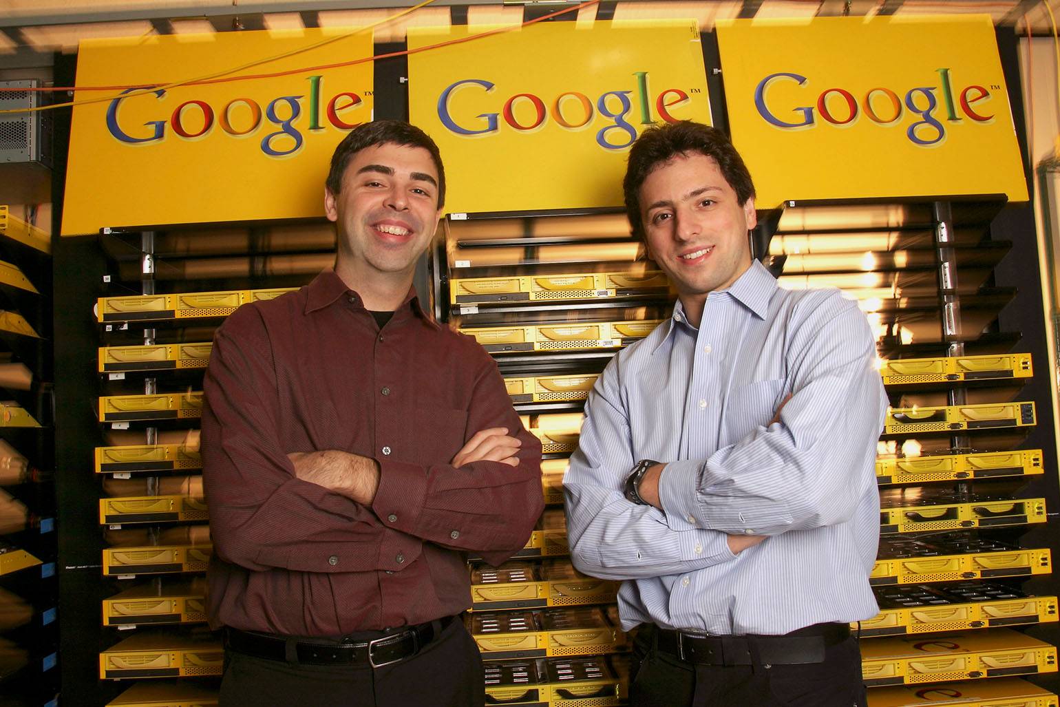 Ларри Пейдж (слева) и Сергей Брин (справа) в гараже-офисе