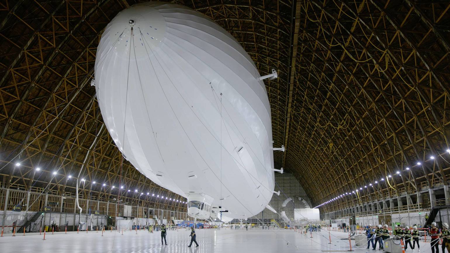 Первый LTA-дирижабль длиной 120 метров в ангаре аэродрома Моффетт