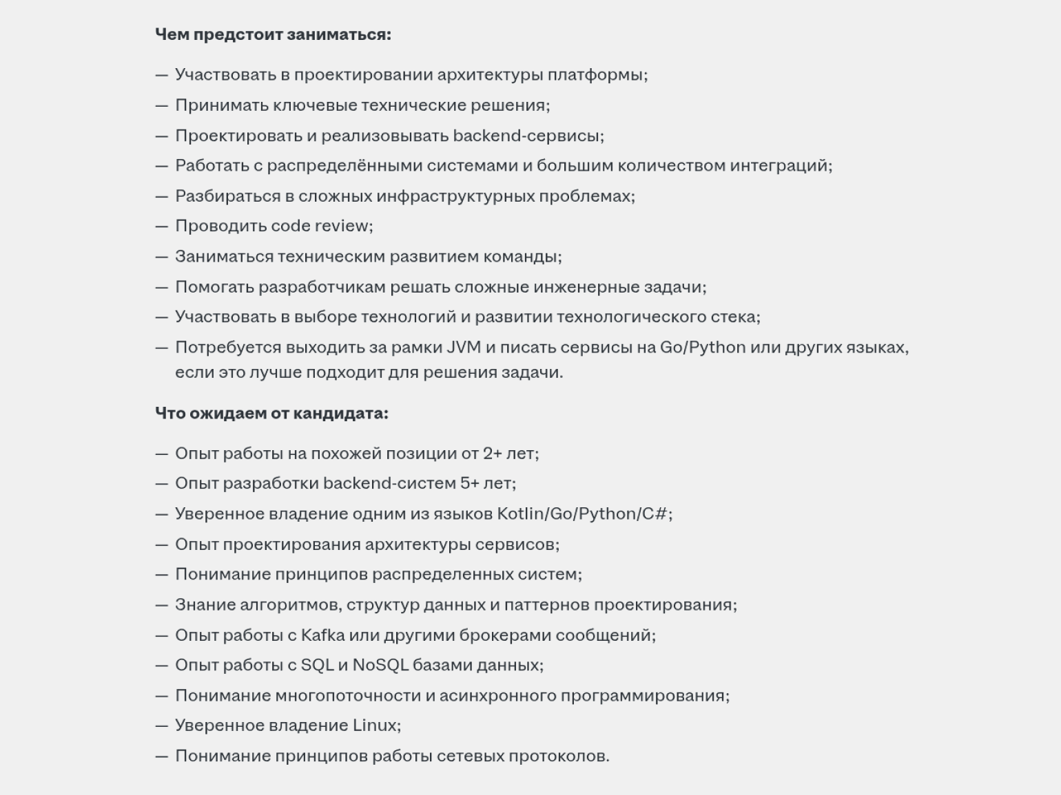 Больше всего получают сеньоры и тимлиды, но у них и больше ответственность. Так, например, выглядит список обязанностей тимлида в IT-компании, которая занимается кибербезопасностью.