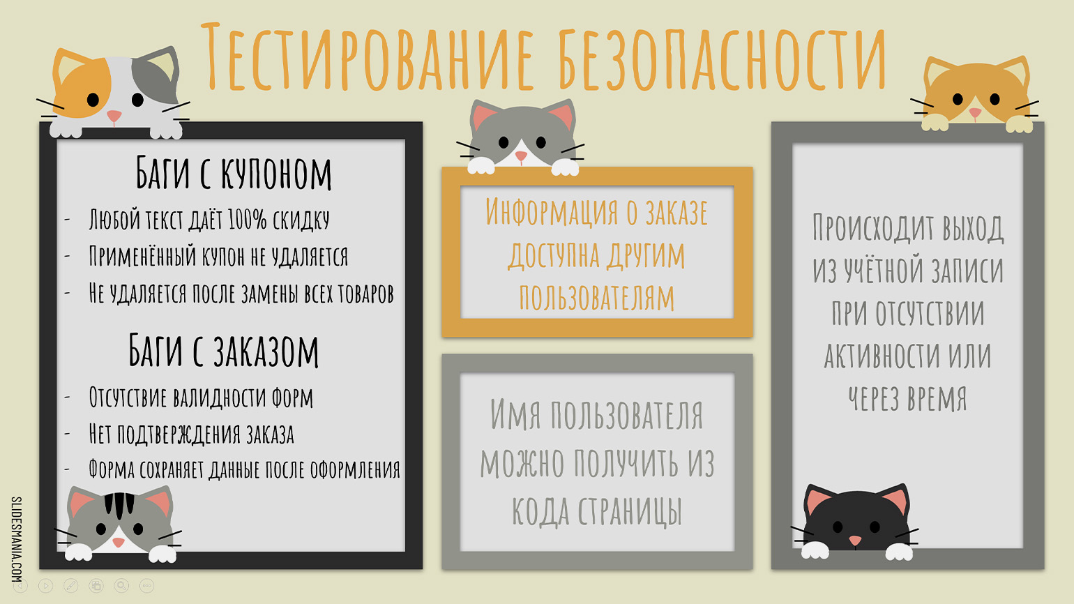 Честно говоря, сейчас я понимаю, что немного поторопилась со сдачей, — там можно было ещё копать и копать. Потому что сайт идеально подходил для учебного кейса: ошибок в нём было много на разных уровнях, и каждая из них — по-своему интересная.