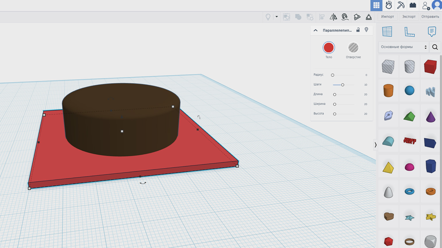 Теперь вы знакомы со всеми основными инструментами Tinkercad. С их помощью можно продолжать добавлять формы и дорабатывать объект.
