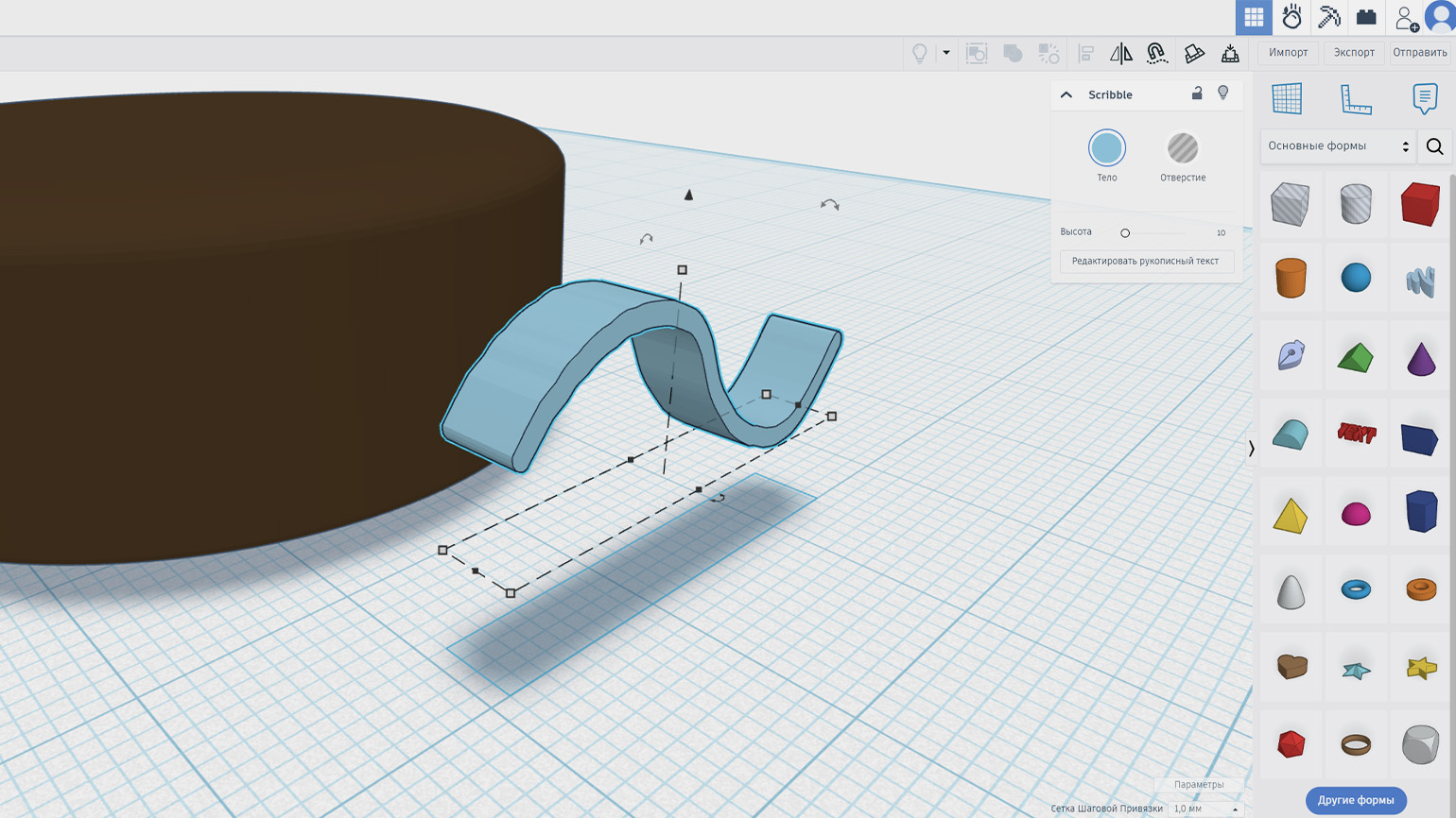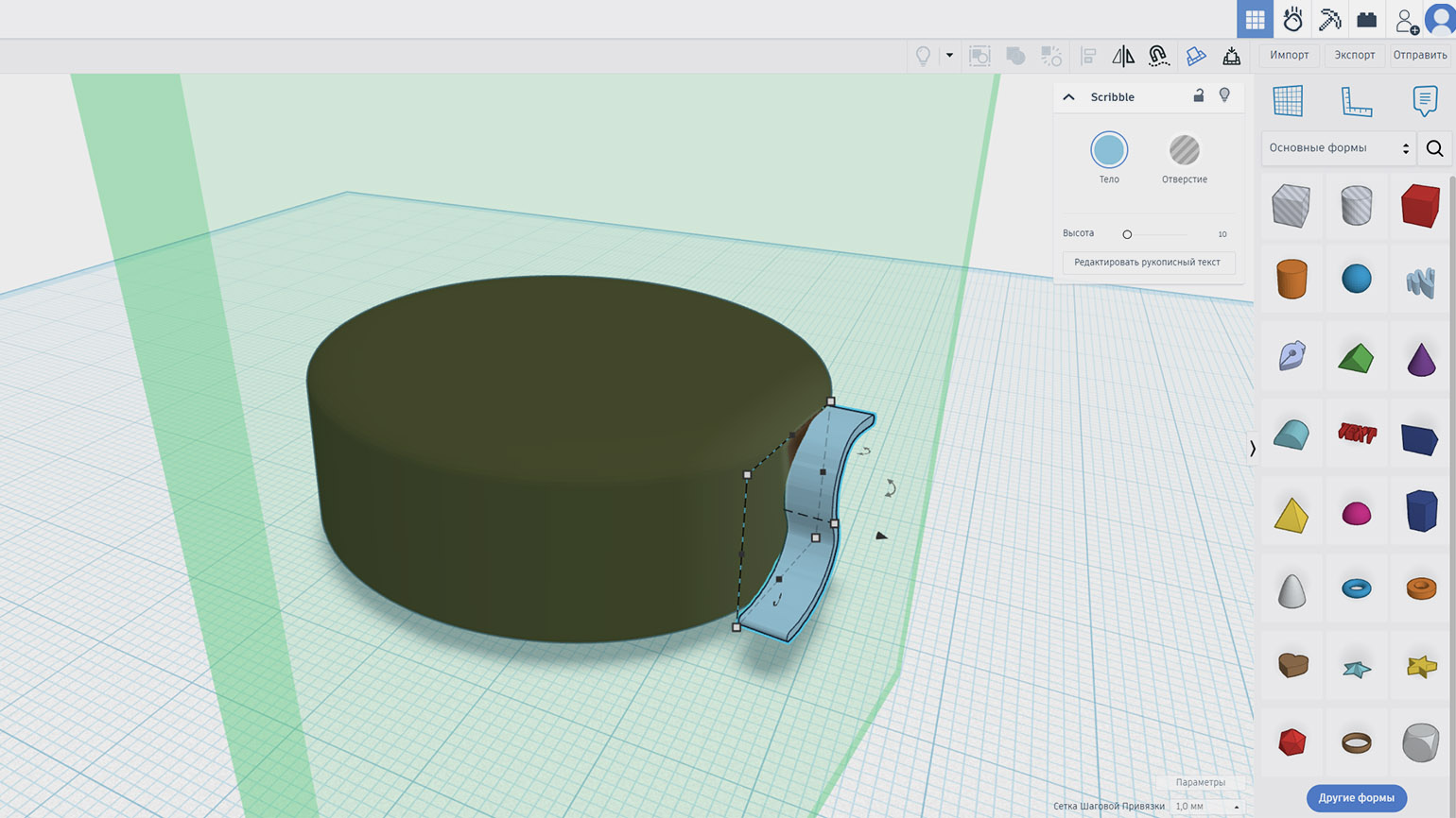 Для нашего проекта нарисуйте волну и нажмите на кнопку «Готово». Затем в основной сцене отрегулируйте размер и положение полученной детали.