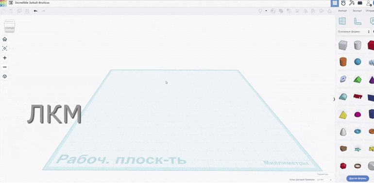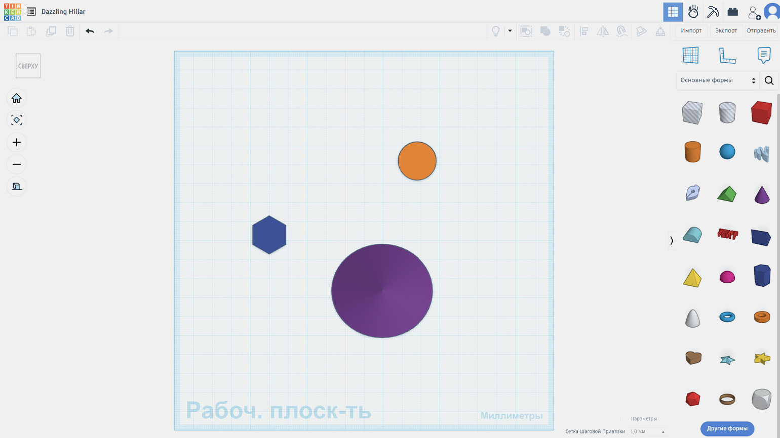 Примитивы — это базовые геометрические фигуры, которые служат строительными блоками для сложных 3D-моделей в Tinkercad. Они находятся в меню «Основные формы» справа от рабочей плоскости.