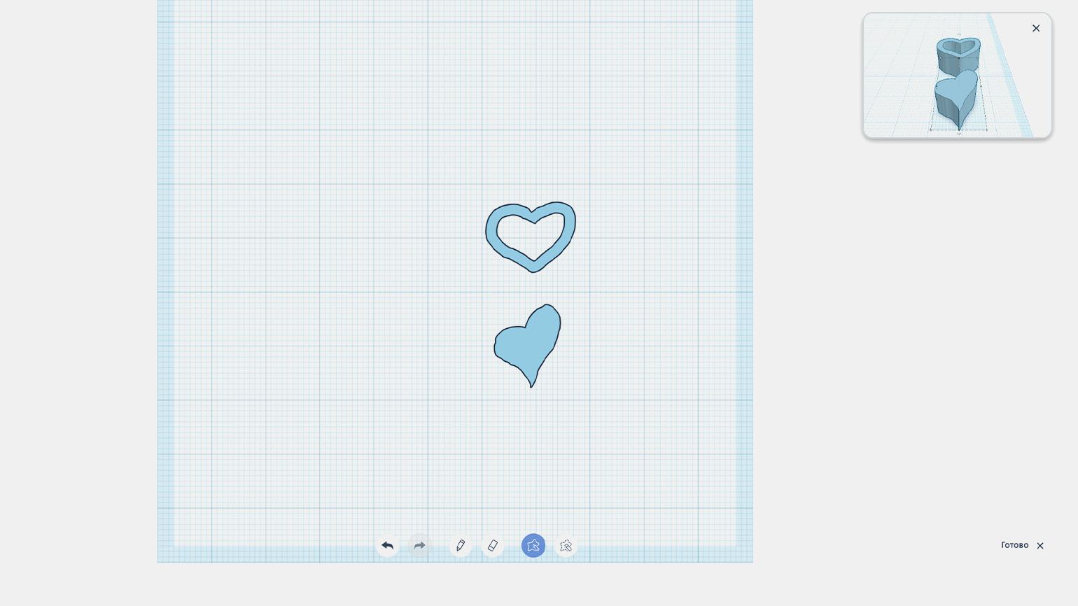 В Scribble-режиме вы можете выбрать значок карандаша и рисовать от руки или карандаш со звёздочкой и рисовать сплошные формы. Во втором случае вы ставите начальную точку, удерживаете ЛКМ и очерчиваете контур — вся область внутри превращается в твёрдое тело. Все нарисованные фигуры отображаются в 3D в небольшом окне справа.