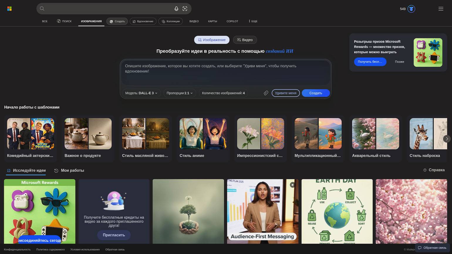 - Image Creator — нейросеть, интегрированная в Bing