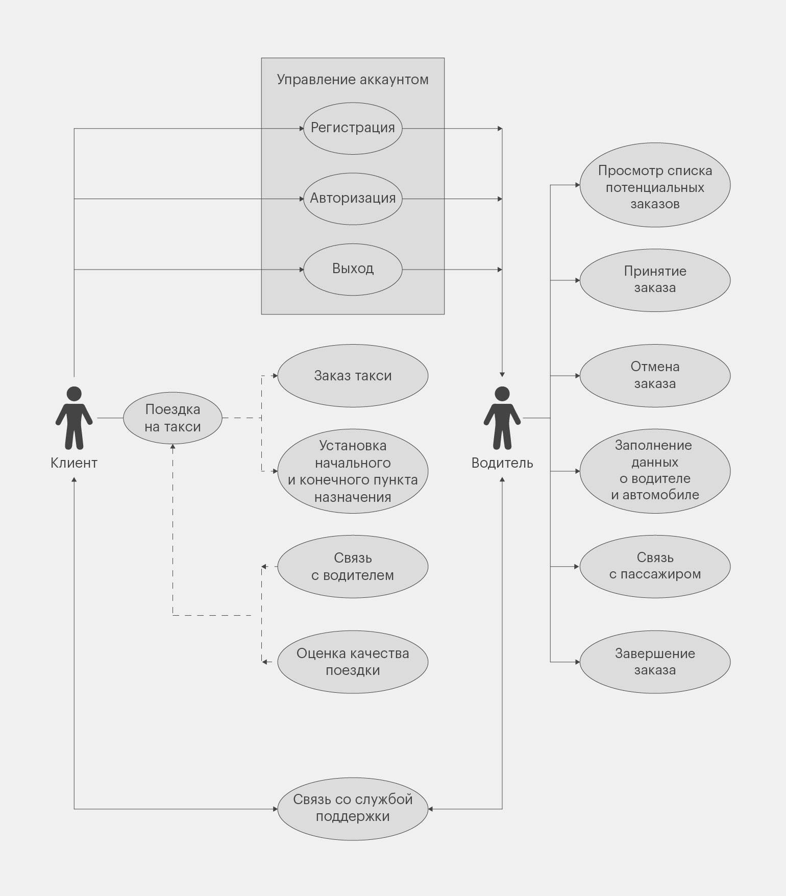 Границы помогают не уходить в лишние детали и не тратить ресурсы на их проработку. Например, в приложении такси в границах use case может быть заказ поездки, оплата и карта города, а управление автопарком или маршрутизацию описывать необязательно.