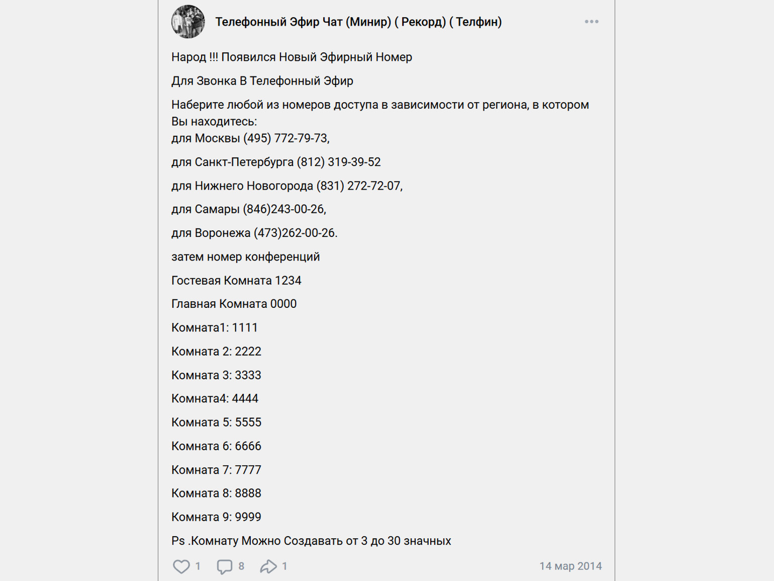 Первые участники столкнулись с этим эффектом случайно. Чаще всего это были дети и подростки, которые набирали номера наугад и неожиданно слышали в трубке чужие голоса. Информация о таких номерах быстро распространялась. Их запоминали, передавали друзьям, обсуждали. Со временем вокруг них сформировались устойчивые каналы общения, куда люди звонили уже намеренно.