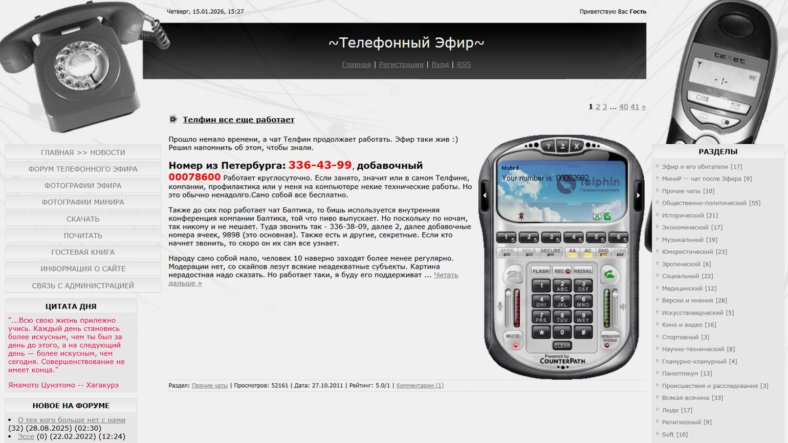 «Номеров „эфиров“ не было в телефонных справочниках. Некоторые попадали в них случайно, ошибаясь номером, другие узнавали номера от друзей и знакомых, а кто-то — в модных ленинградских заведениях, в том числе в кафе „Сайгон“. Чаще всего телефоны распространялись сарафанным радио: сменился телефон „эфира“ — через неделю все об этом знали».