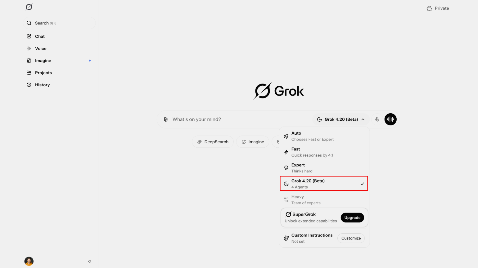 Компания xAI добавила в чат-бот Grok новый режим — Grok 4.20 (Beta). В бета-версии реализована мультиагентная архитектура: модель обрабатывает запросы с участием нескольких ИИ-агентов. Попробовать обновление могут все пользователи в веб-версии и мобильном приложении Grok.