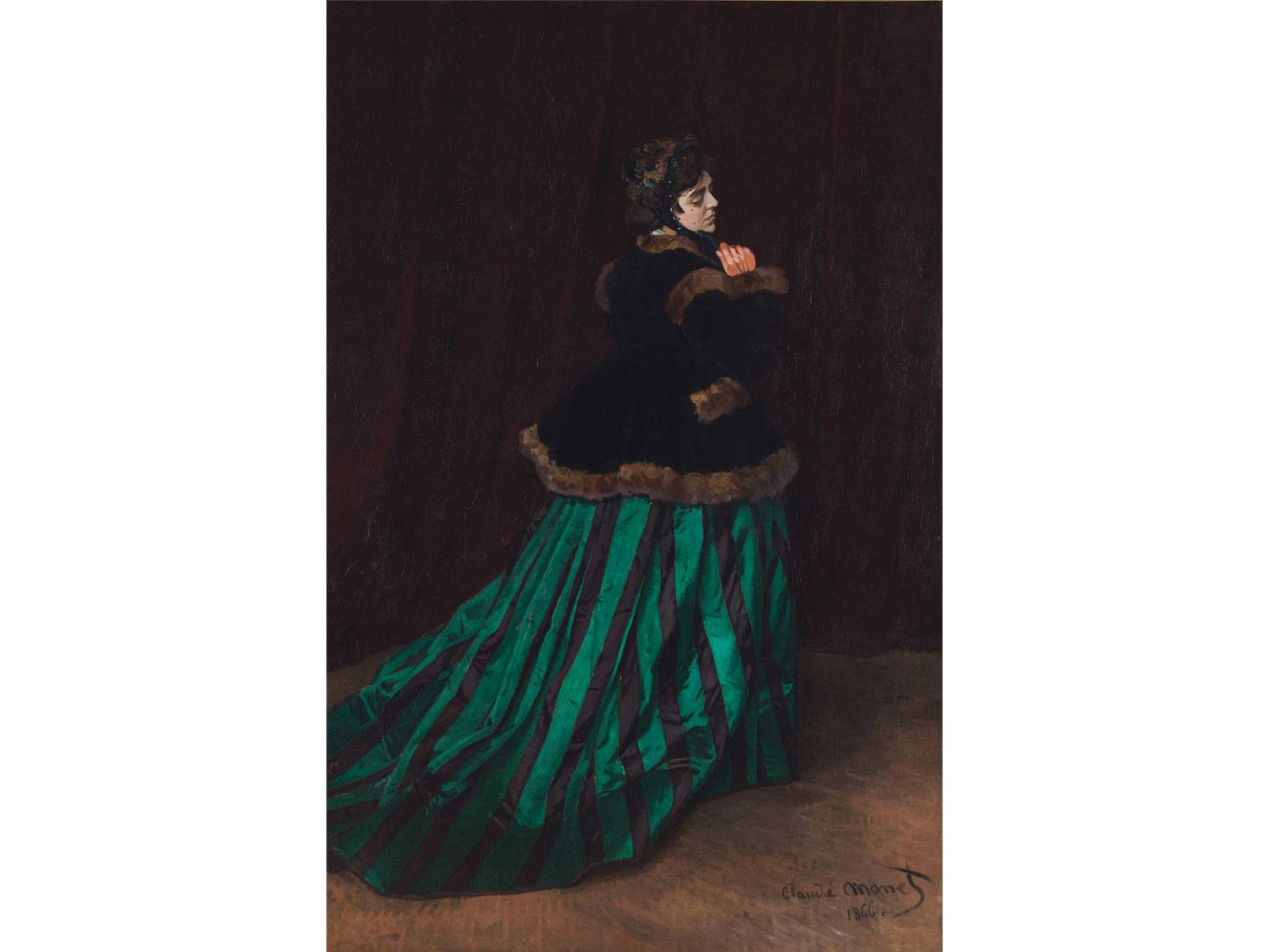 Первый громкий успех Моне принёс портрет его будущей жены Камиллы Донсье. Художник запечатлел трогательный момент: уходя, девушка обернулась и подняла на прощание руку. Чувства художника к Камилле были настолько сильными, что на заднем плане картины невозможно разобрать ни одной детали. Всё внимание Моне отдал женщине, которую любил и которой восхищался.