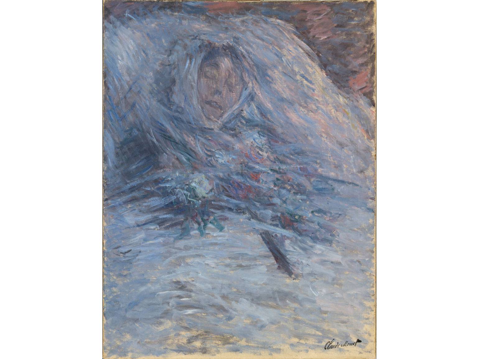 Смерть жены стала огромным ударом для Моне. В состоянии шока художник создал портрет усопшей и в красках запечатлел смерть. Картина выполнена в сине-серых тонах — так Моне пытался выразить своё отношение к жене, отобразить её угасшую женственность и показать захлестнувшее его горе.
