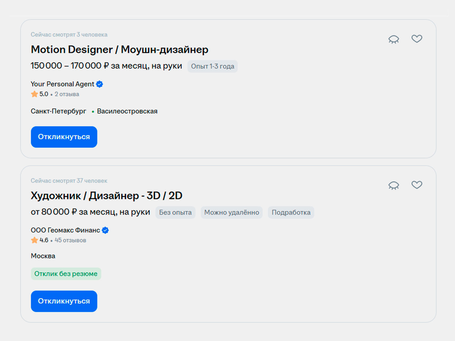 - Motion-дизайнер — сочетает 3D-графику с видеомонтажом, делая динамичные ролики для рекламы и YouTube.
