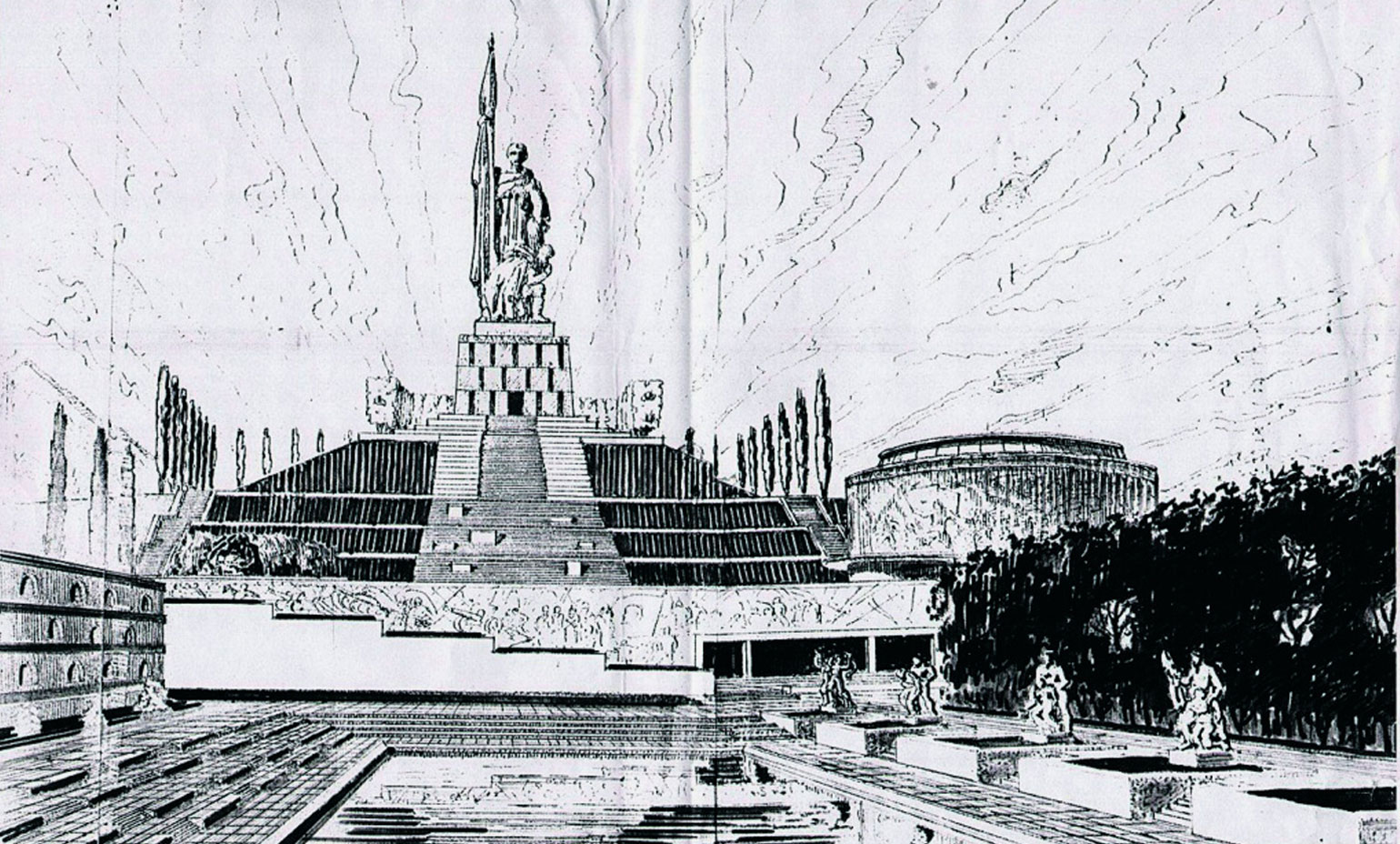 В рамках конкурса поступали разные проекты будущего монумента: кто-то хотел сделать пирамиду с каркасом из переплавленных фашистских танков, кто-то видел памятник в виде колонны с фигурой Сталина наверху, предлагали даже возвести комплекс зданий в форме звезды, в центре которой меч пронзает немецкую каску.