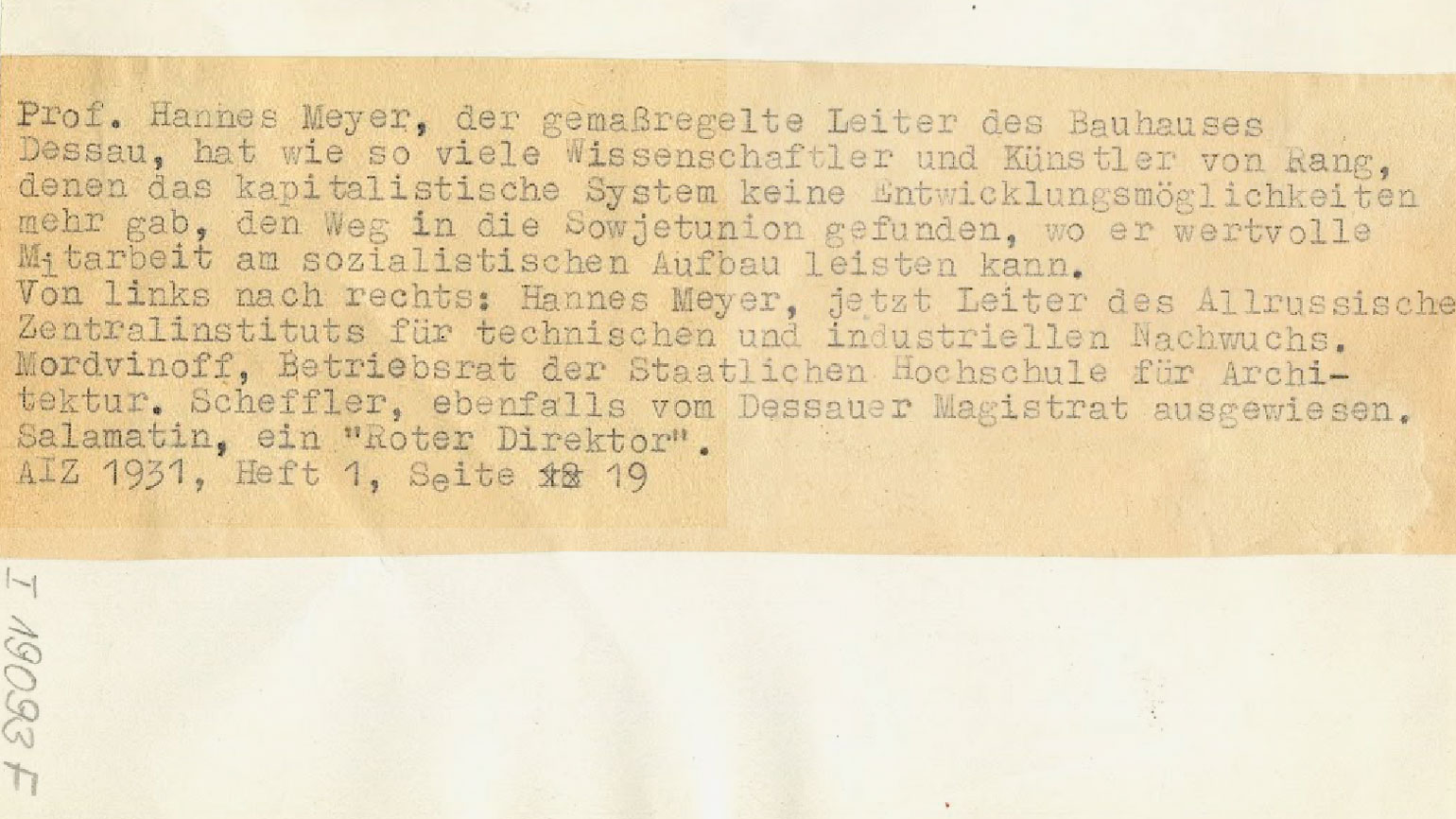 Сразу после скандала Ханнес Майер начал организовывать переезд в Советский Союз. Всё получилось, и с ним поехали семь студентов и выпускников Баухауса — Красная бригада.