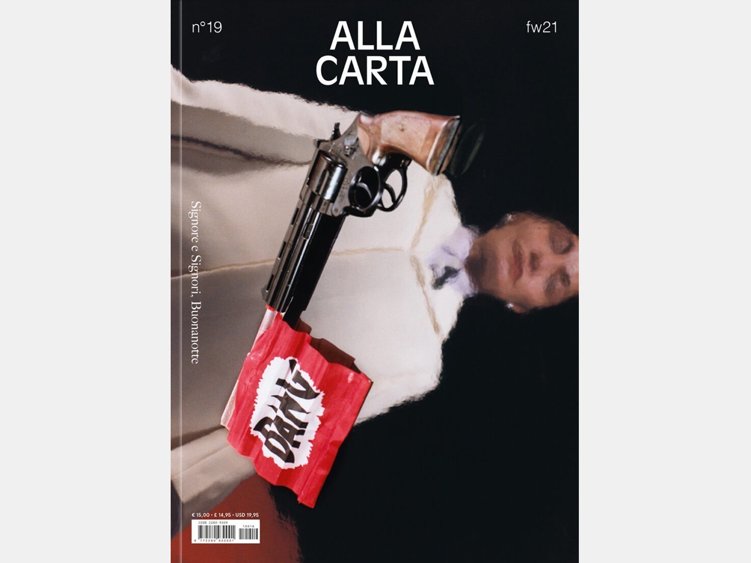 «Alla Carta — международное издание, которое выходит два раза в год и показывает передовые моду, искусство и дизайн с собственной итальянской точки зрения. Мы искренне верим в бумагу, по-итальянски — carta. Во времена, когда интернет кажется единственным проверенным способом коммуникации, Alla Carta — это ода самому ценному из носителей и самому ценному времени суток: наши интервью всегда проходят за столом, отдавая должное старой итальянской традиции — праздности».