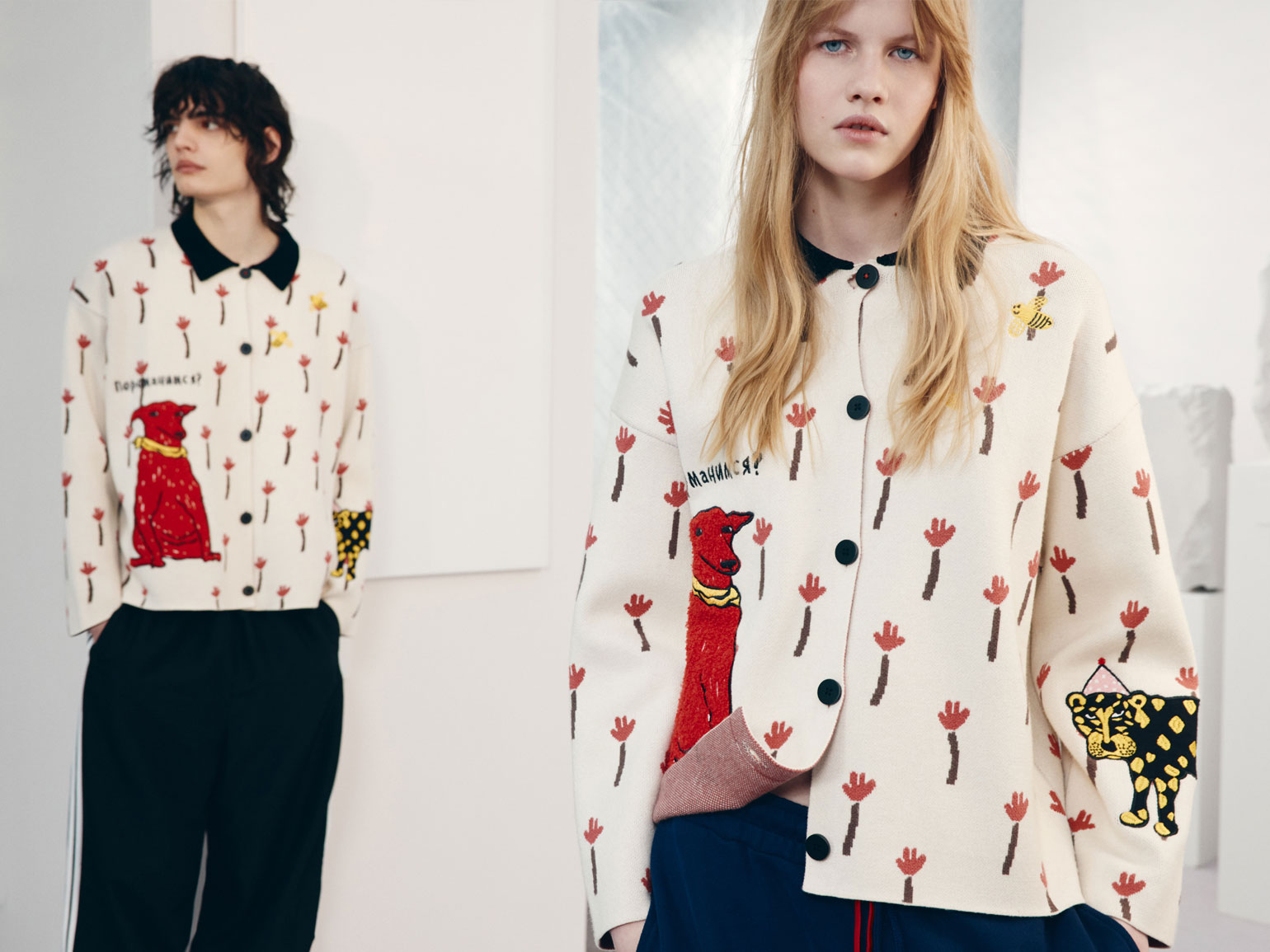 В линейку вошли тёплые зимние вещи — свитеры, кардиганы, аксессуары и футболки — с яркими принтами собак, главных героев работ художника. Среди них — пёс по кличке Балу, который уже появлялся на выставке-блокбастере Русского музея «Жизнь замечательных собак» и в проектах DiDi Gallery.